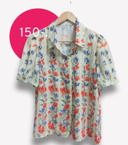 เสื้อคอปก งานผ้าชีฟอง ลายดอก