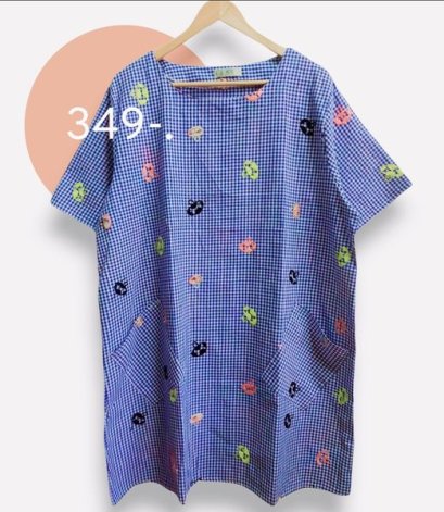 เดรสโอเวอร์ไซส์ ลายสก๊อตสีน้ำเงิน